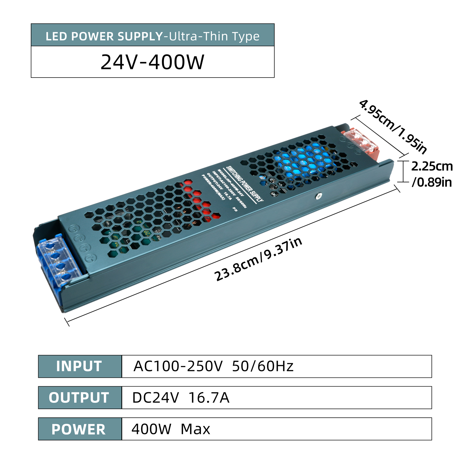ODIFF Led Light Box Power Supply, Ultra-Thin And Long Strip, 238mm*495mm*225mm, Transformer Silent Heat Dissipation, 240v-400w, Adapter Switch, Led Driver Power Supply (Hp Ultra-Thin Model -24v-400w)